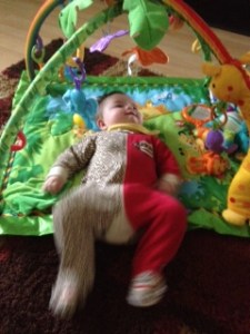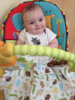 After about a week and a half we seemed to be in the clear. We went three days with no spasms. Then the eye rolling started. It is now mid October and we are still trying to get a handle on the eye rolling. Presumably, they are milder spasms that are breaking through on the Sabril, but he’s doing well and continues to progress. While the full spasms were going on, he was quieter and it was harder to get a laugh, but he’s back to his giggly self. He underwent an 8-hour EEG to try and determine what was going on. Naturally, he didn’t have a single incident for the entirety of the test. Nope, not until we were in the car on the way home. I was so frustrated I might have driven my car into a tree had Connor not been in the car. But the EEG came back otherwise greatly improved, the hipsarrythmia having cleared up. So this Wednesday it’s back to the neurologist for an hour EEG (yeah right, like we’ll get lucky enough for something to happen in that small window) and an appointment to discuss his progress. I’ve been a little bit crushed that Sabril wasn’t the 100 percent miracle cure it has been for many others. I truly thought it would knock them out completely within a few days, so that we’re still seeing anything has been a bit crushing. That being said, it has immensely improved the situation and allowed him to continue on his developmental path.