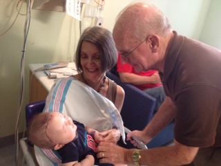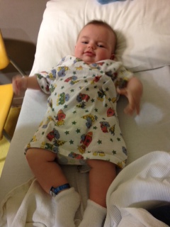 A little after his four month birthday we checked in for surgery at 6 am on a Friday morning. He went back at 8 am for another MRI in the operating room and the surgery was underway by 10. My parents and Chris’s sister came to the hospital for support and as we sat at the lobby Starbucks it became apparent that Chris wasn’t talking. His nervousness was palpable. I can’t really explain why I was as calm as I was (other than that I had started back on my anxiety pills a few weeks prior :). I was the mess during the NICU and Chris kept it together. Now the roles were reversed. Although his version of being a mess is much more pleasant than mine. I was just looking forward to having some sort of resolution finally. Although I will say the backpack full of thank you notes to be written and magazines to be read didn’t get touched. I wasn’t THAT good, despite hourly calls from the OR to let us know everything was going fine.