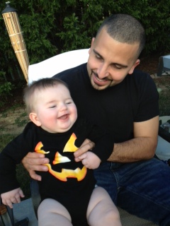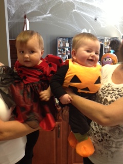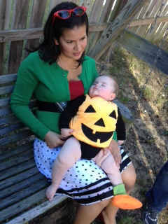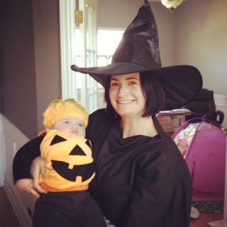 Connor also attended his first Halloween party yesterday, which was also the day of his 7-month birthday. It was thrown by my friend Claudia. Claudia is the reason Connor will eventually grow to resent me and think I’m totally lame because she loves to throw theme parties and has the inflatables rental place on speed dial. I’m gonna have to rent Cirque du Soleil for his birthday to compete. And the entire staff at Nickelodeon. Either that or we’ll just pretend he has the same birthday as her daughter Isabella and tell him the party is for him. Since it was a kids’ party, I was unable to wear the French maid costume I bought in, I don’t know, 2004? Fortunately, my mother keeps everything, so I wore my witch outfit from middle school instead. Look, I just prefer decorating my child and house to decorating myself.
