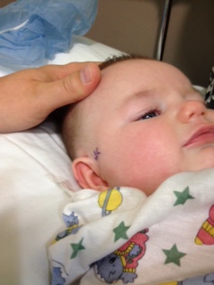 Fortunately, we went forward with brain surgery on July 27. It was performed at Scottish Rite by Dr. Joshua Chern. Oh, we love Dr. Chern. I did not expect a neurosurgeon to have a bedside manner, but he had really blown us away when we met him in the NICU in April. Very approachable and interested in making sure we understood what would be done, as well as the risks. When he tried to show us the MRI, he was unable to retrieve it in the computer system, but instead of just giving us a quick run through so he could go on with his day, he said he’d be back in an hour because he wanted us to see exactly what needed to be done.