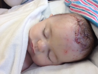 If you couldn’t see it, you wouldn’t know he’d had brain surgery. I’m a bigger baby over a headache. Surgery? I’d probably be ringing a bell and demanding to be waited on for six months. The only time he fussed was the next day when the swelling started and you could see his face getting tight. Once we told the nurse to give him the meds regularly, he was fine (side note: we actually had to tell them to give pain meds to him. We assumed that would be automatic after drilling into his head, but apparently not). Even then, all he had was tylenol and motrin. Man, even I got percocet automatically for pushing him out.