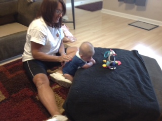 Connor had physical therapy this morning and she continues to be very happy with him. We’ve been focusing on strengthening his core, but now we’re shifting to mobility by working with him in positions that will make sure he gets comfortable transitioning into crawling and standing positions. His independent sitting has improved since she saw him just last week.