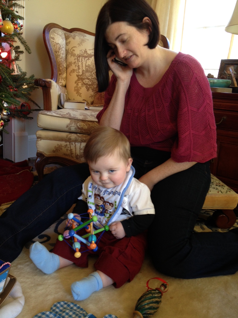 But in a way, Christmas is now a permanent fixture in our house, as it spelled the end of our dining room. Connor officially now has too much stuff not to dedicate a space (besides his room) to him. We pushed the table against the wall, surrendering the space to him, as he looked on smirking, sipping his Similac and pretend smoking his teething ring . He gave us a smile that said, “you held on longer than I thought you would.” He thinks it’s “charming” when we pretend to be in charge.