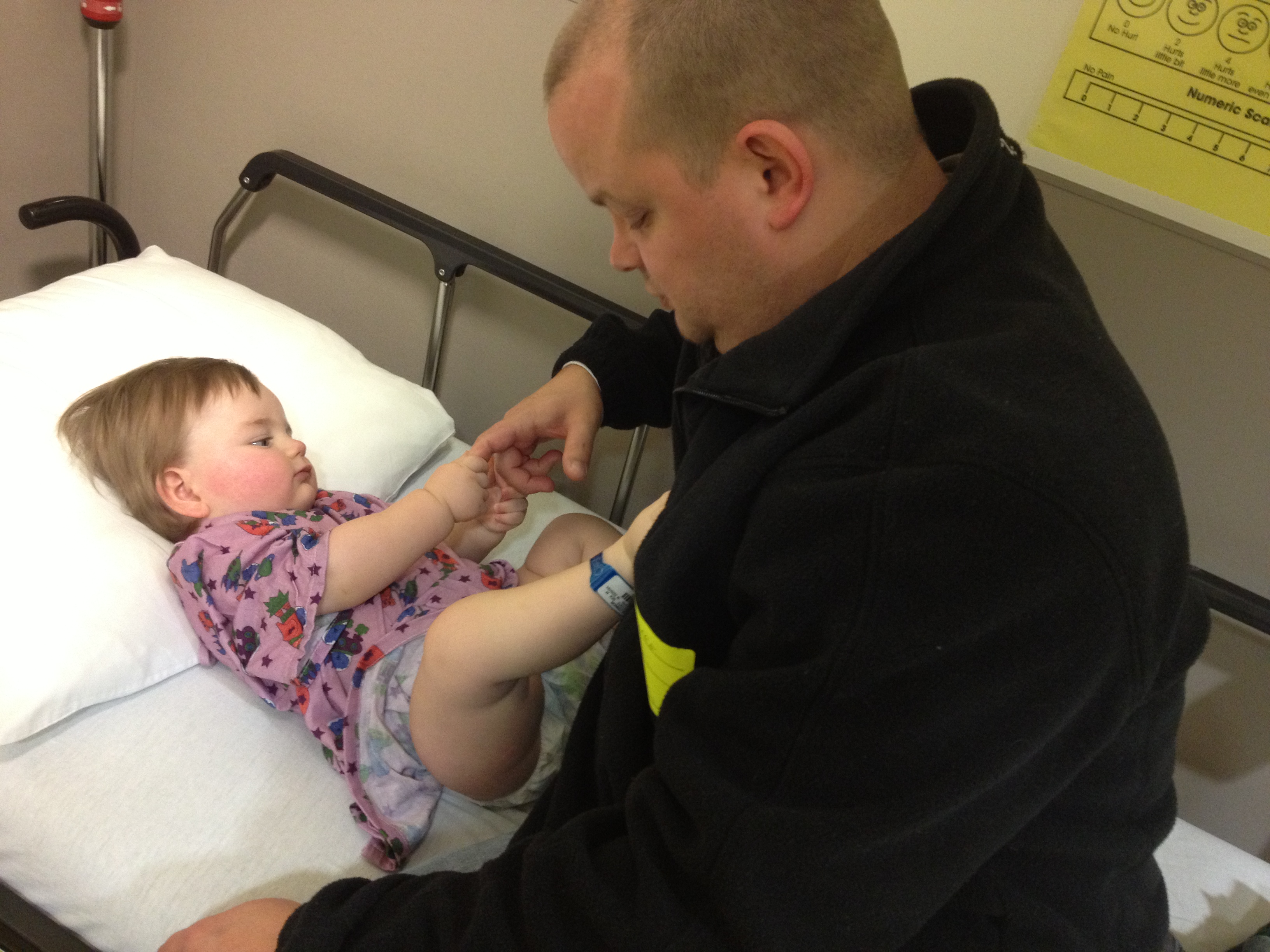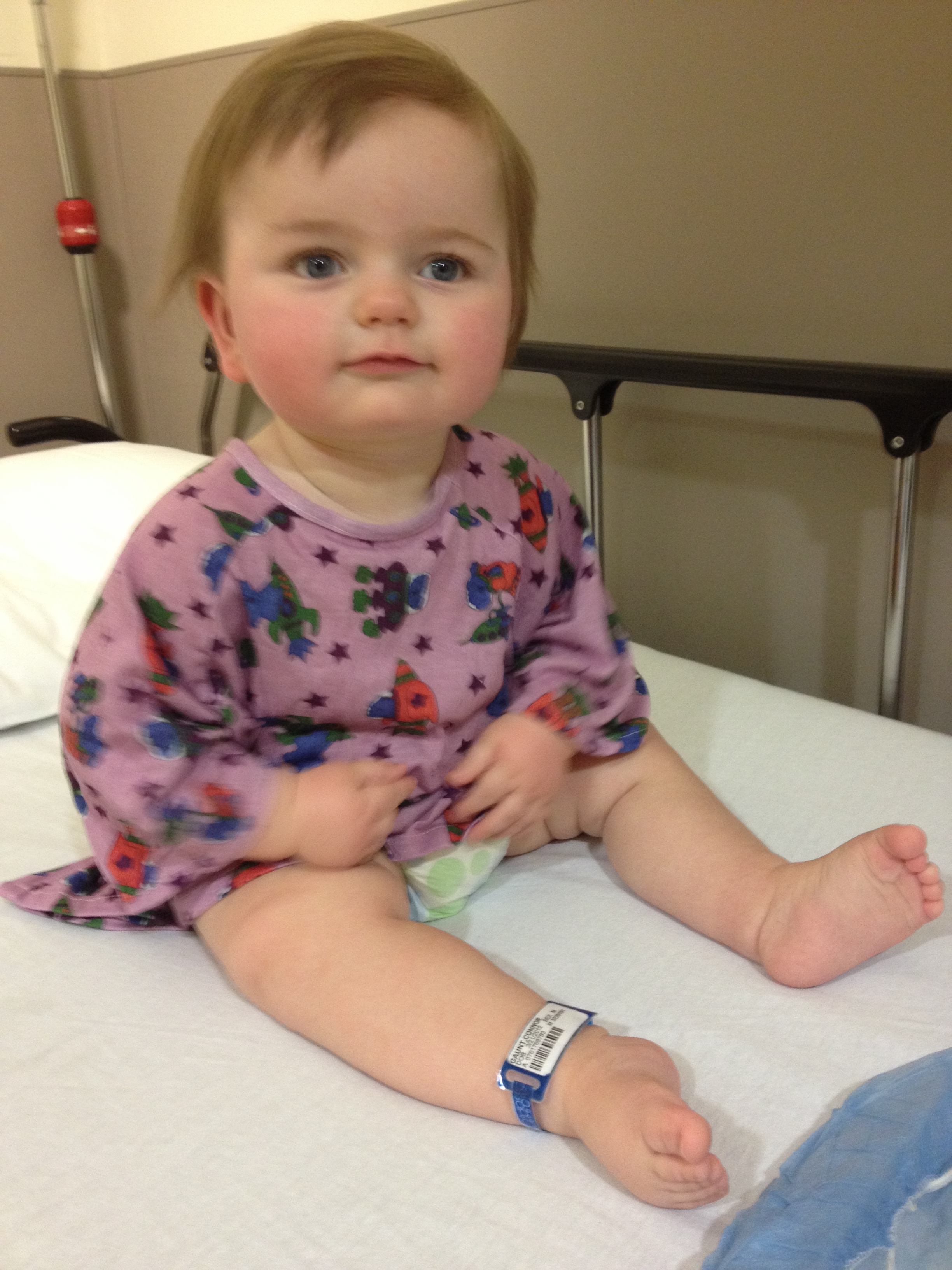 Given the risks, should we keep a close eye on the vision of our children? Certainly. But the intrusive nature of the ERG makes many families angry. It’s no simple test. We took Connor in for his second one yesterday (mmm hmmm, we’re behind schedule). We had to be at the hospital by 9 and get admitted through day surgery for a test that won’t start until 11. Yup, I told you it’s not a simple test. Then there is lots of information gathering, weighing, measuring, and finding a vein for the IV. Connor likes to make things difficult by hiding his veins. He always requires the IV team, rather than a regular nurse. Then we take him down to the room where they will place contacts in his eyes that test his reactions to stimuli. But he won’t be awake. He must be sedated with propofol (yup, Michael Jackson propofol). Once it’s over, we must wait for him to wake up and drink before they will pull out the IV and we are allowed to leave.