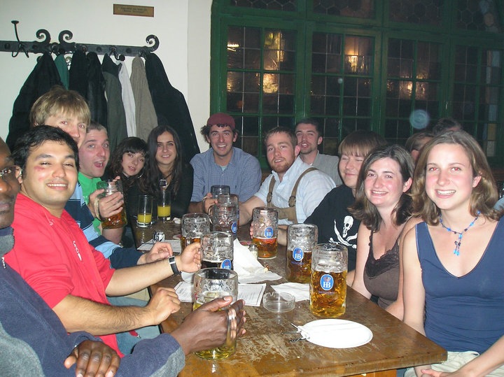 In Rennes, France with Cecile in November 2002. I finally got my own Paris metro adventure. Flashed by a man in a trenchcoat!Spring Break Madrid March 2001 with Sara, Cecile, me and Asma. Home of the famous quote, “SHUT UP! SHUT UP! NOBODY TALK!”At Hofbrauhaus in Munich in May 2005. Cecile is farthest right, next to me.