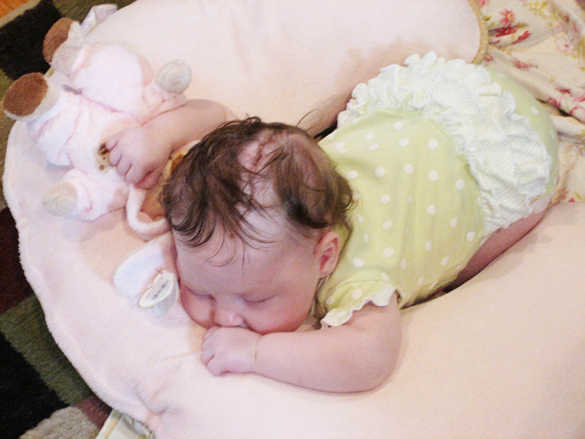 The surgery was a success! Her seizures were gone. Her pituitary gland went into shock as a result of the surgery, so she developed diabetes incipitus (water diabetes) and renal disorder. She had to go home having two shots a day of DDAVP (a really dangerous drug that controlled her sodium levels) along with phenobarbital and topamax to control her seizures and hydrocortisone to control her adrenalin. All this adult medication for this 7 pound baby, but if it was going to help, who am I to question. I am not a doctor. Boy has that attitude changed! I was just so happy to take her home! She didn’t sleep the first few days because of the dark and quiet. She was so used to all the lights and noise of the hospital. We were so hopeful that this would be it.