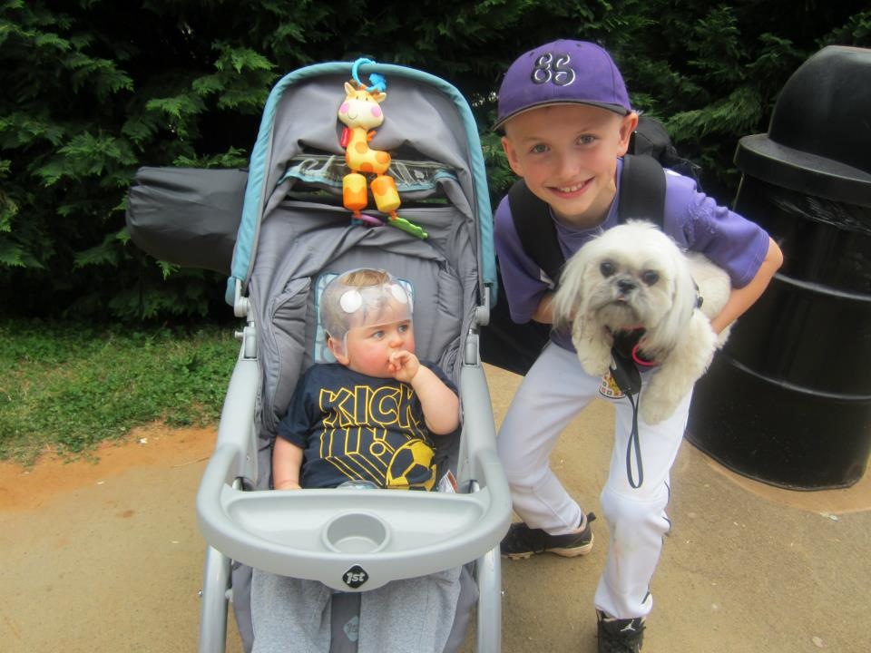 Then, to top every thing off, Connor’s neurologist called yesterday with the results of his EEG. The stupid tuber in his left occipital lobe is acting up again. It has put out spikes before, but apparently Connor is having subclinical seizures again. Those are seizures that have no outward appearance, but show up on EEG. The tuber he had removed when he was four months old was causing him to have a couple subclinicals an hour, plus a handful of clinical (ones we could see) a day. We haven’t seen any on EEG since then. Yay. Here we go again. He assured me that this was nothing like when Connor was born but he did see more than one in the eight hours. Mother F. When we started him on Trileptal, we upped the dose once per directions, but never upped the second time — per directions — since we weren’t really seeing anything anymore. So now we are upping and will have another EEG once Connor is totally off the vigabatrin.