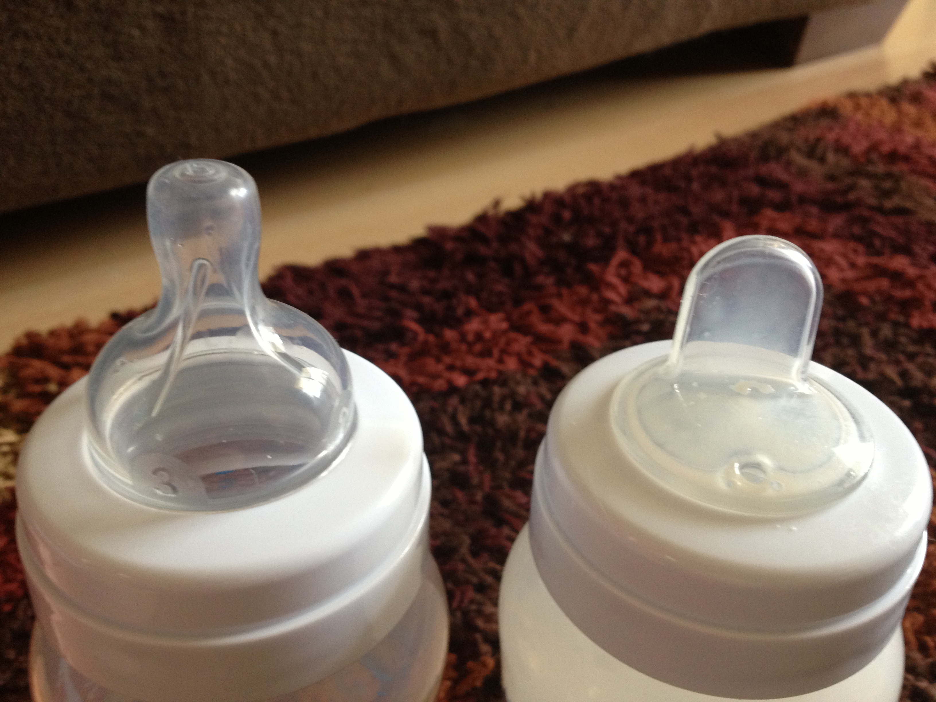 Speaking of progression, here is an area where he is fighting us tooth and nail. The bottle. I cannot get that kid off the nipple. He doesn’t care what style or shape the cup is — he’d probably even drink out of Flavor Flav’s chalice — it just better have a nipple on top. The hard plastic sippy cups inspire instant anger and hurling of the container, so we tried the sippy cups that are interchangeable with his bottle. We can either have the sippy cup mouthpiece or the regular nipple. He hates this sippy cup mouthpiece a little less because it’s pliable like a nipple, but other than sticking it in his mouth a few times, he just plays with his bottle. His speech therapist gave us some things to try, but thus far, no luck. Maybe his college roommate will shame him away from it.