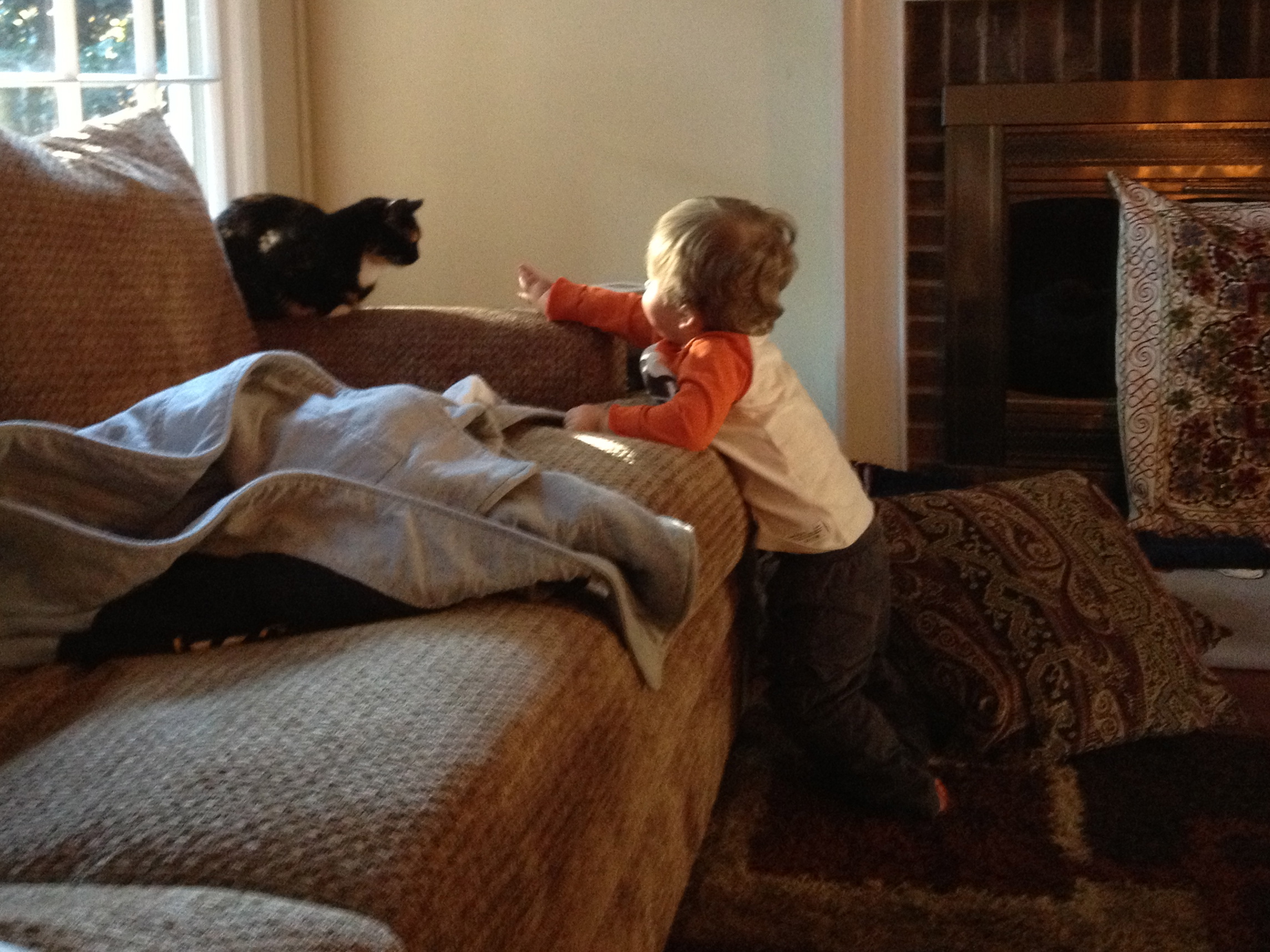 Sometimes when I have something to blog, I jot it down on my phone’s notepad to remember it for later. But sometimes I jot it down somewhere else and forget about it. I just found this on my laptop. It must have been written this summer, since I mention a mild jealousy that my friends’ newly adopted son showed more outward attachment to them than we necessarily saw from Connor. It made me feel good to read this today because it helps me remember that he is continually progressing, the details of which can be missed when you’re with him every day. Still no “mama” per se, but he does think I’m increasingly awesome, so maybe when he just goes on with his muhmuhmuhmuhmuhmuh, he actually IS referring to me, but I’m far too great for just two syllables.