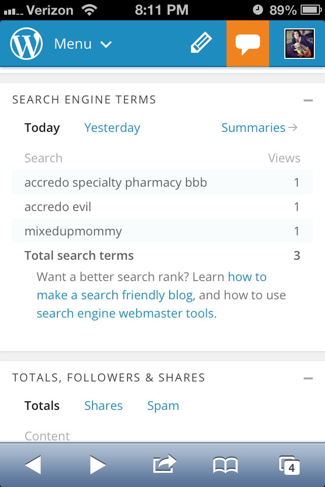 Comment 3: My comment still won’t show on your latest blog post about having to walk a few extra feet with the whole handicap thing. Your express scripts post disgusted me, and I don’t even work for them, I work for Caremark in Monroeville PA and I take calls all day from people like you. Except they say “I wish our insurance didn’t switch to your company, Express Scripts was so much better. Yet you publicly said that going to Caremark was a saving grace or whatever it is you said. So which is it? None of you get it, some do, but most don’t. And you, mommy, need to post or approve my reply because this is a public blog and people need to know the truth about your fraudulent claims. I will keep bothering you until I get a reply. phasedance@gmx.com