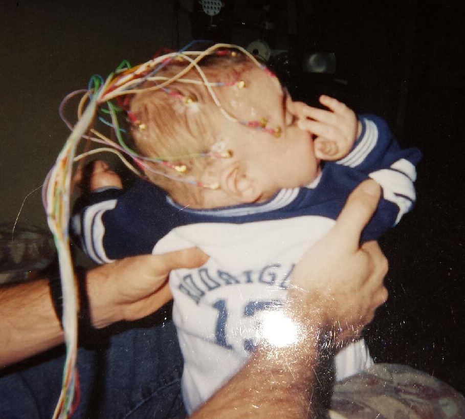 We were admitted and Cam was given an IV bolus of Keppra. This made things so much worse. He had several more episodes when we reached our room. We were hooked up to an EEG machine in the wee hours of the morning for an hour long study. Cam only had one episode during this time. When the tech came to remove Cam’s leads he received a call stating he was to be left on the machine. My heart sank. I knew there had to be something wrong for the EEG to continue. Three hours into the EEG a neurologist came into the room. He explained that the EEG was showing hypsarrhythmia. This was a common feature of infantile spasms. I was kind of optimistic in the next few seconds thinking how minor most spasms are. The optimism was short lived as the physician continued to say the word epilepsy. How could my baby have epilepsy? We aren’t epileptic, our family has no history, there were no problems during my pregnancy, and he was an uncomplicated delivery! He ordered an MRI for that day.
