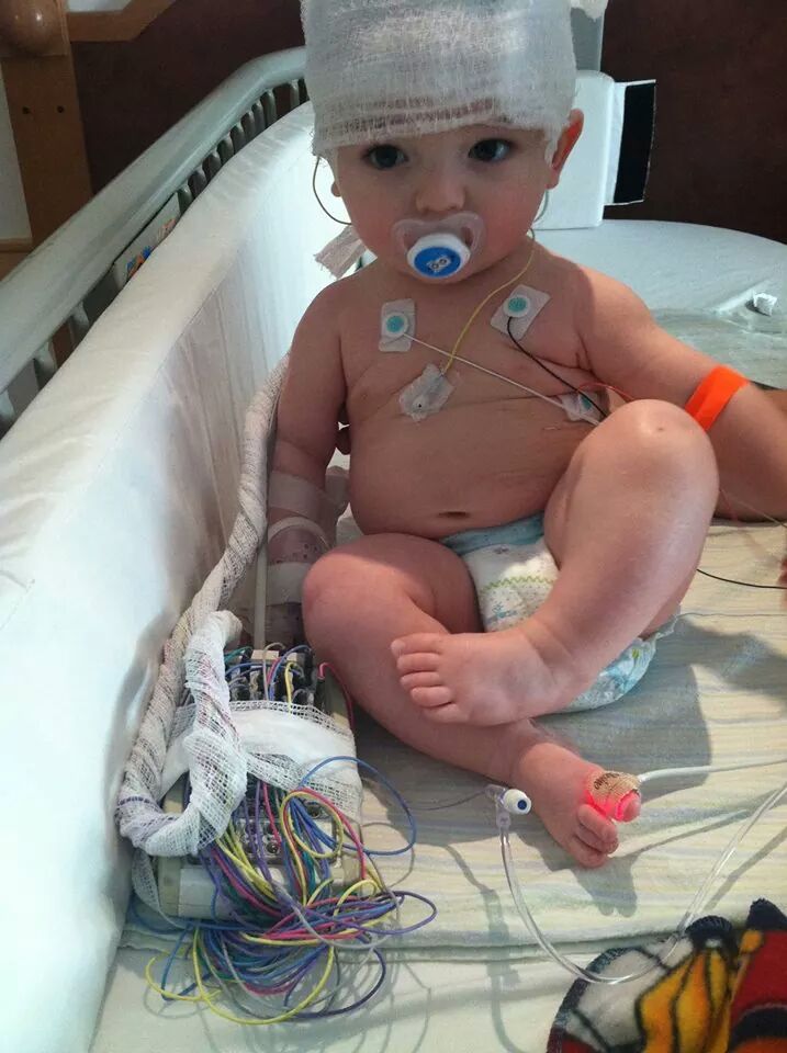 up several times, and he was really fussy. I am a nurse and wrote the entire situation off as the startle reflex. It was two days later walking through Walmart when I witnessed an episode for myself. It made me uneasy to see Camden’s arm rising up to the left and his head turning that way in a series of pull like motions. I told my husband I would call the pediatrician in the morning because Camden seemed fine before and after the episodes. I thought maybe he was teething or had a low grade temp. That night as I was rocking Cam to sleep he had an episode in my arms. This is when I knew things were more wrong than I could figure out. I called our pediatrician on call who told me if it was his son he’d go to Pittsburgh Children’s Hospital. We packed a bag, called our parents, and drove the two hours to Children’s. My father and mother -in-law made the trip with us, thankfully.