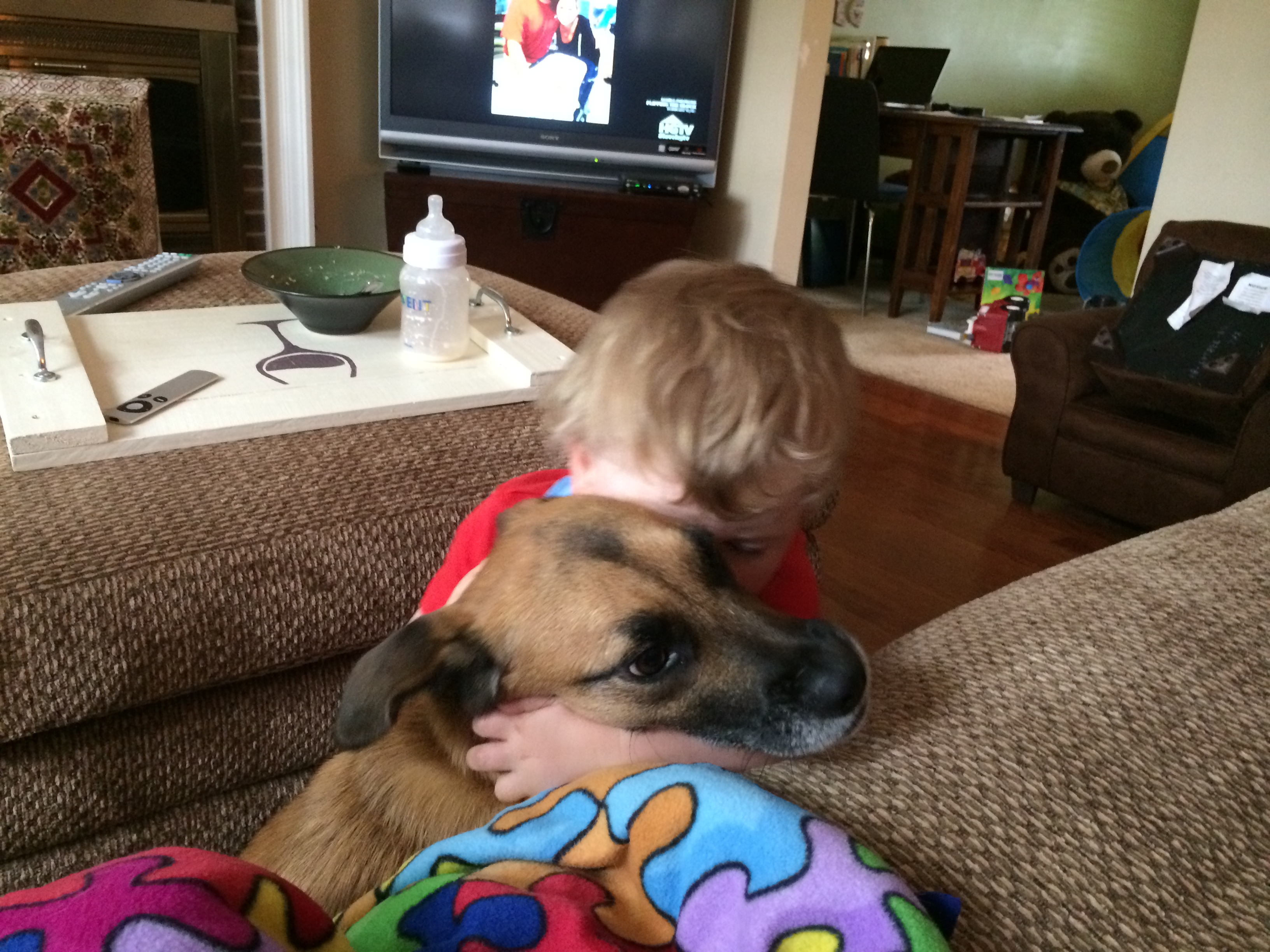 My other exercise comes from picking up after Connor. He has always enjoyed starting his day by emptying his toy tubs and pulling all the books off the shelves, but lately he’s been a little too enthusiastic about chucking his belongings behind him. Once everything is in a pile behind him, he turns around and starts chucking everything in the other direction. He is highly amused and excited by this, so I think it’s a stimming behavior.