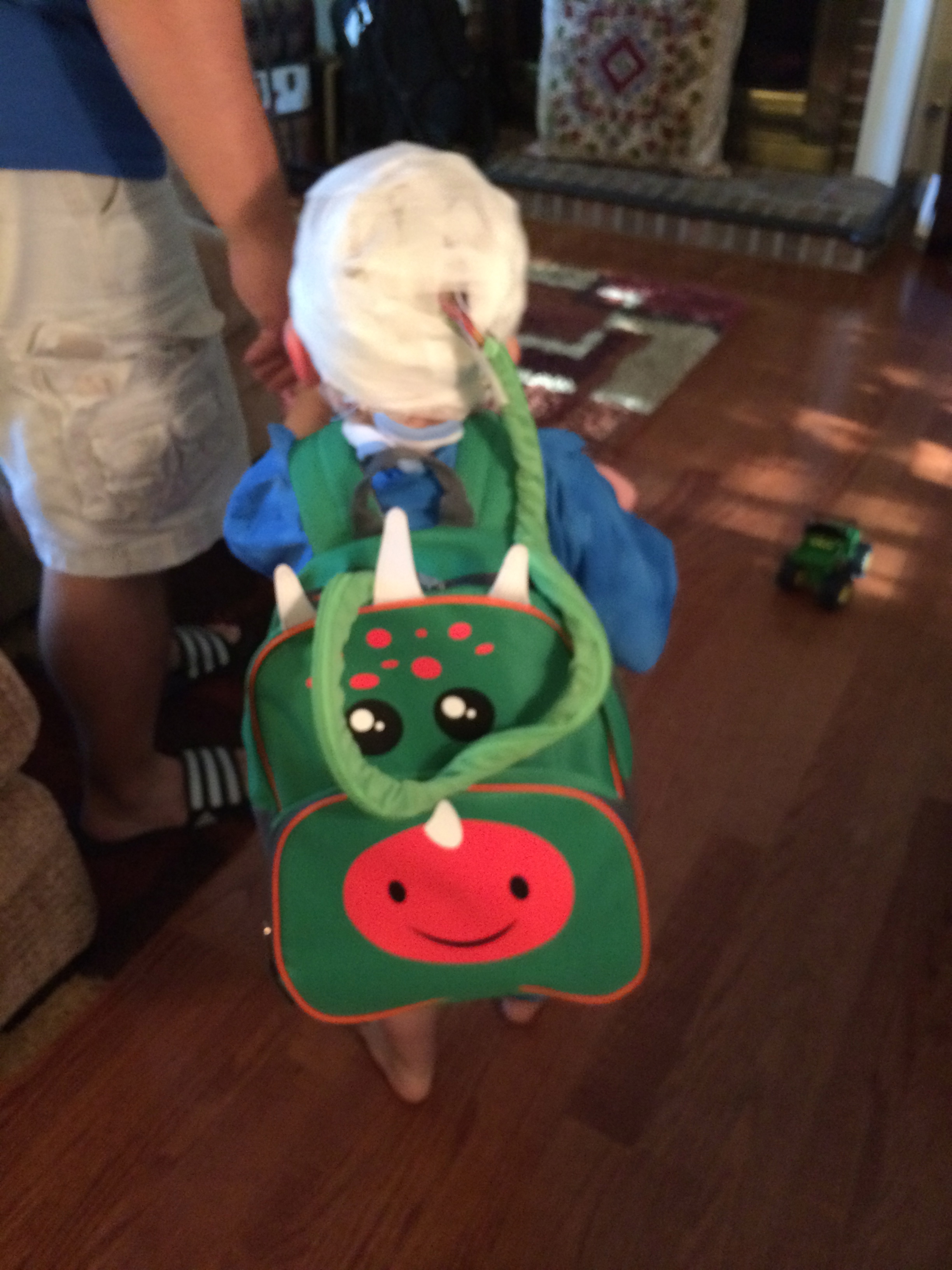 He had taken his bib and put it on the couch. When I told him to come eat, he actually stopped, picked up the bib and brought it with him!