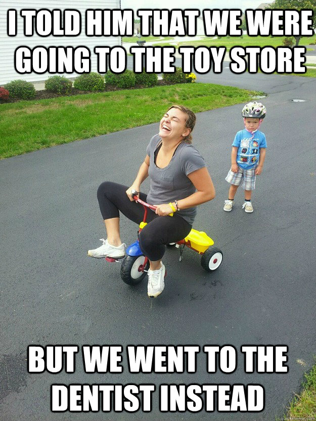I could hear myself thinking from just a few short years ago from another cube. “This lady seriously brought her kid to the dentist? It’s called a babysitter. I will never do that when I have a kid!”