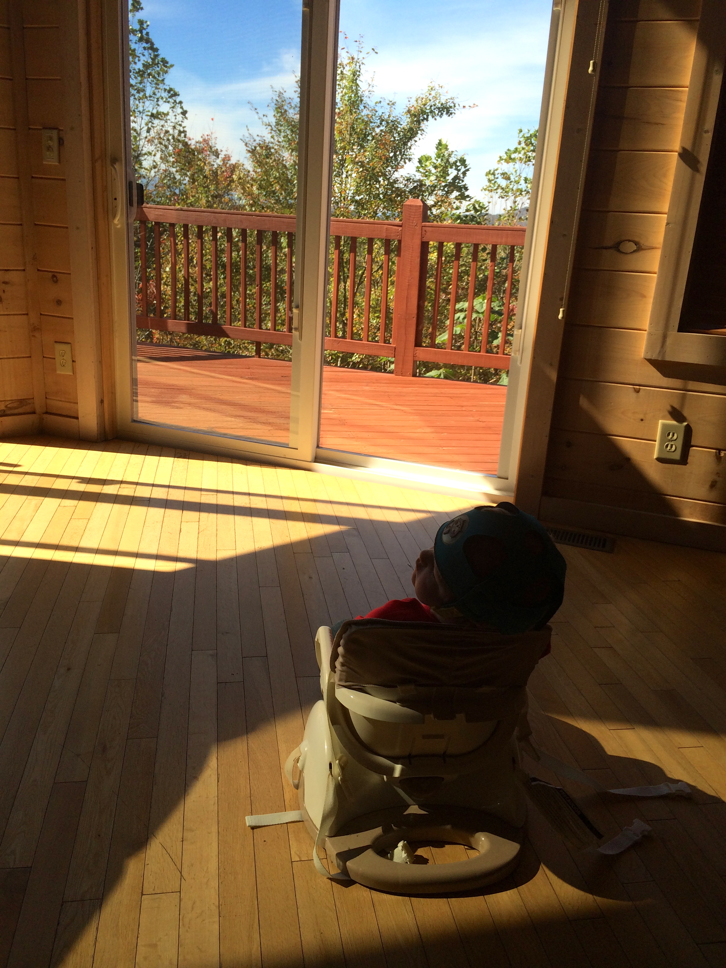 Ah yes, the space saver high chair that fits on a regular chair. He could be locked into it off to the side of the dentist cube, yes? That’ll do. I was feeling very MacGyver and brilliant. Connor is always fascinated when the chair within a chair is placed on the floor. He will sit in it just because of the novelty.