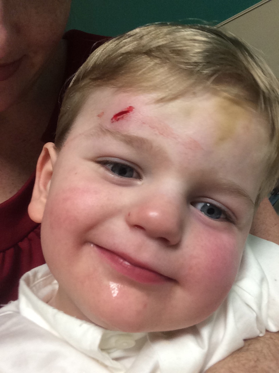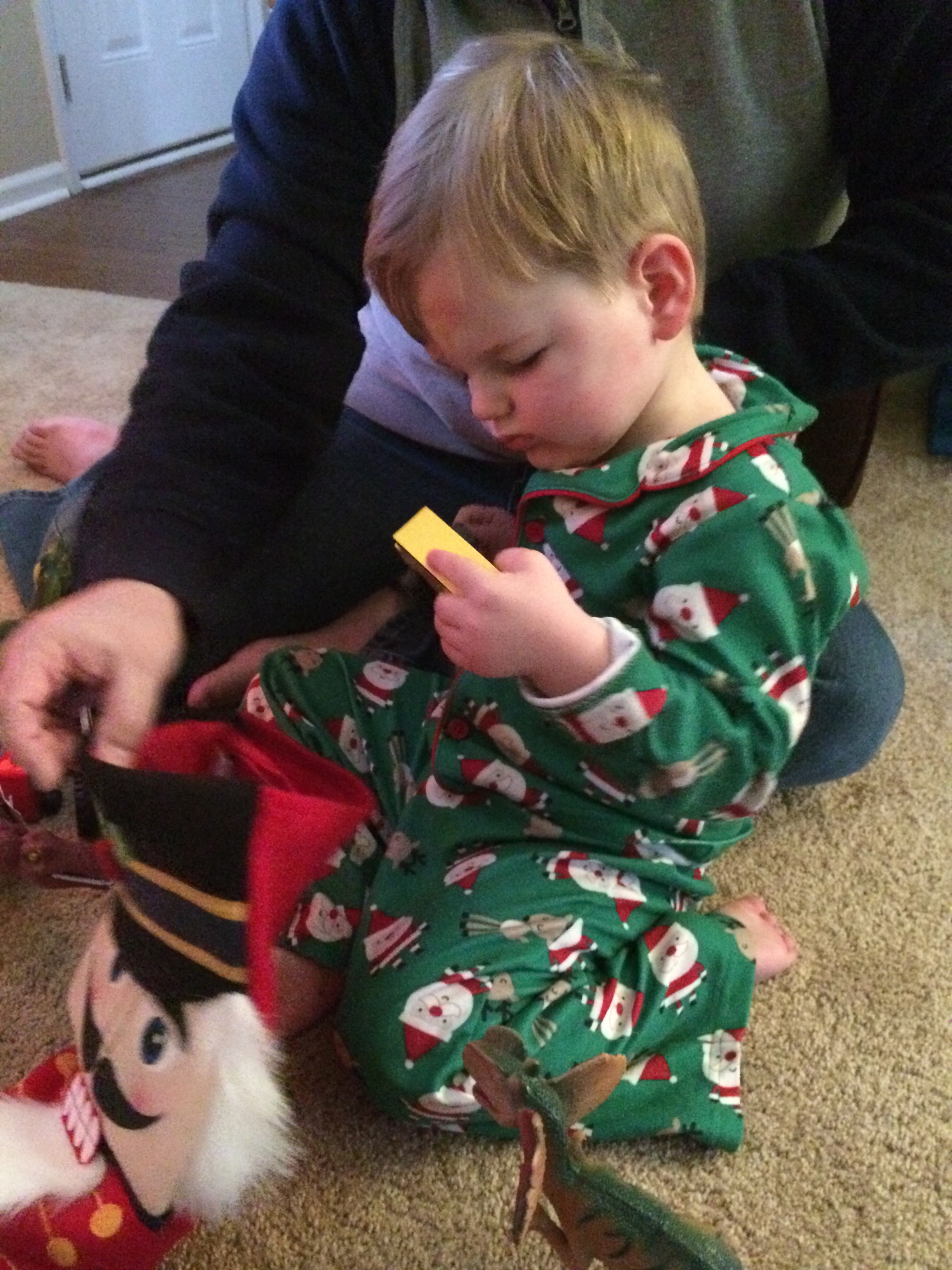 First he decided he was not sure he wanted to walk into the dentist office so he plopped down on the ground outside the door. I was losing my grip on the chair at this point so I set it inside the hall so I could encourage him to keep going. He came in the first door and then decided he wanted to hang out right there outside the actual office, so he plopped down again. He was eventually coaxed into the waiting room by the sight of his magical throne…on the floor.