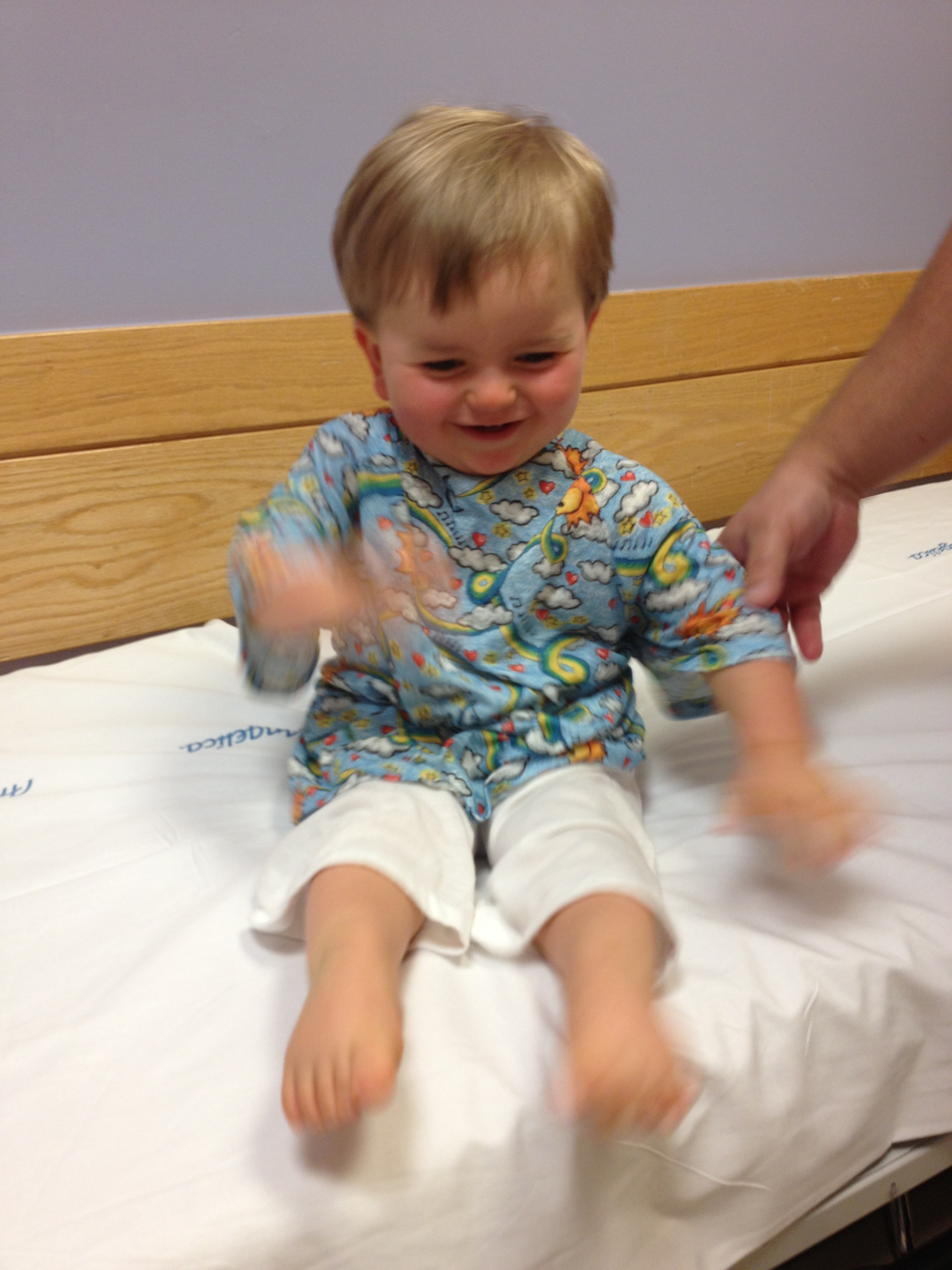 protocol recommends an MRI of everything, but I just couldn’t seem to get someone on the phone that would make that happen this time). Since kidney involvement is common, we prepared ourselves for the possibility that Connor would have some sort of involvement by now, even though his previous scans at birth and six months were clear. When the tech came back to take additional photos after showing the initial pictures to the doctor we were pretty sure we were right. Connor does now have signs of TSC in his kidneys–innumerable minuscule angiomyolipomas. They are not problematic or affecting his kidney function, so we will just continue to monitor for growth. Hopefully they will not ever require intervention.