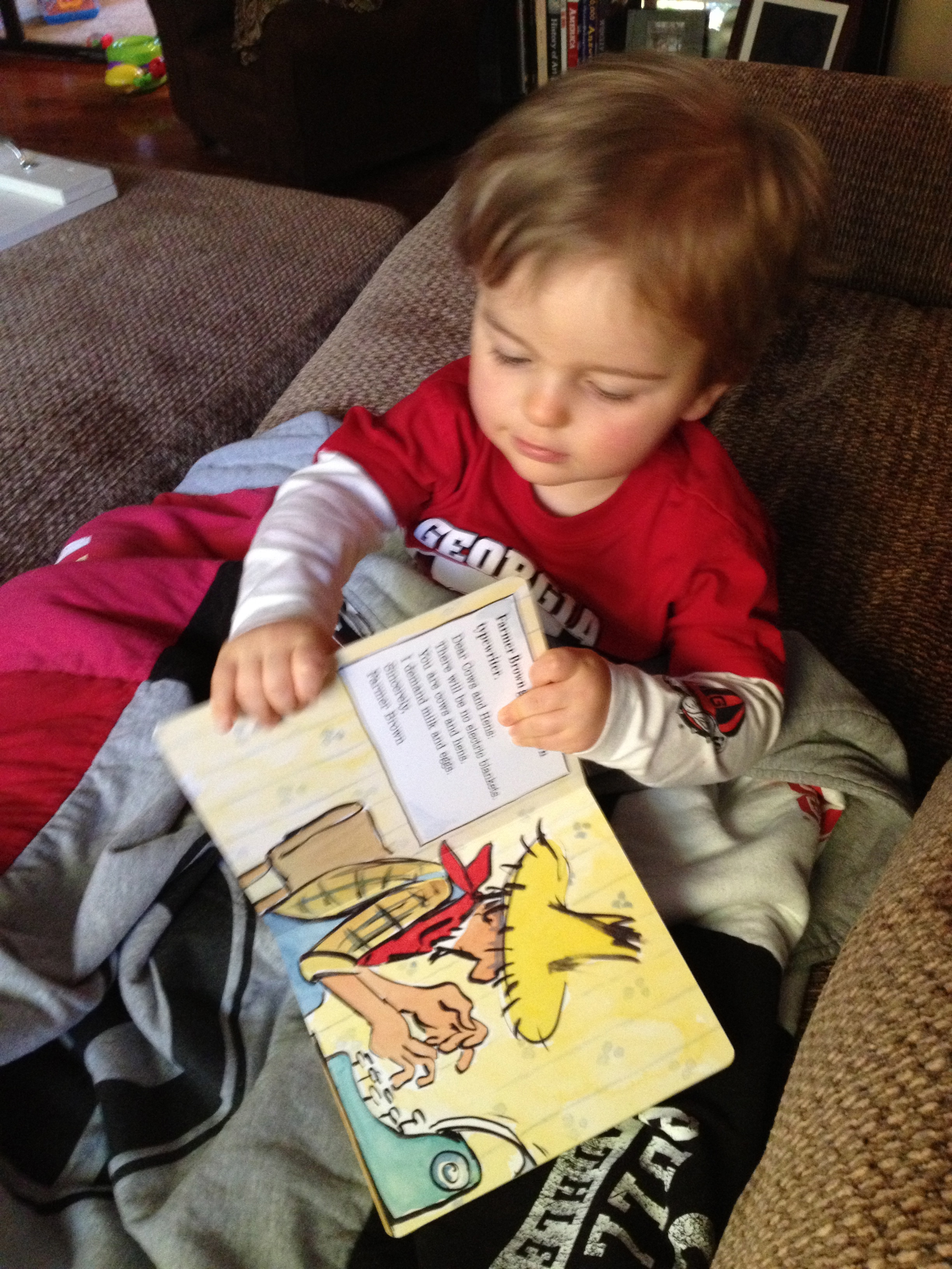 IMG_6571Connor is getting closer and closer to walking. We can now hold both hands as he takes forward steps to us. At his last physical therapy session, his therapist decided to remove the seat from his gait trainer/walker. I thought she was nuts. I thought he’d slump down with the waist support under his shoulders and refuse to cooperate, but he maintains standing and he’s moving better than ever. We had it locked so he couldn’t turn but could go back and forth in a straight line. On a whim the other day, I unlocked the ability to turn and though he careened a little out of control into furniture and the walls (guess we will paint this room last) like Lindsay Lohan behind the wheel of a Mercedes, he had a blast trying to get around.