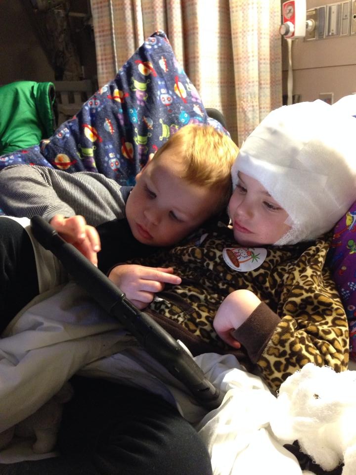 I mentioned in my last post that just before I headed off to a blogging conference, Connor and Chris were getting sick. I returned home to Connor still exhibiting cold symptoms, and Chris the same. Though when Chris started having hot and cold flashes, I became suspicious that something else was at play. Connor slowly seemed to get worse and we celebrated his fourth birthday by having to give him two Diastat doses in one day, 12 hours apart for the first time ever. The next day he spiked a fever and had quit eating and drinking so we went to the ER where he was diagnosed with the flu. An IV perked him up to his old self so we went home, but he reverted the next day and we were admitted from Wednesday-Sunday. He developed pneumonia on top of the flu and almost ended up in ICU on Friday when he couldn’t keep his oxygen levels up. Thankfully, the next day he began to recover.